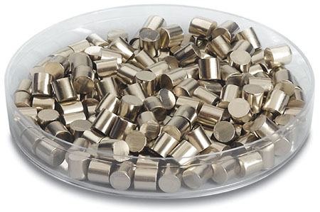 Nickel is a hard, lustrous, silvery-white metal. It has a density of 8.91 g/cc, a melting point of 1,453°C, and a vapor pressure of 10-4 Torr at 1,262°C. Its key characteristics are malleability, ductility, and ferromagnetism and its polished surface resists tarnishing when exposed to air. It is the second most abundant element in earth's core next to iron. It is mainly used to make stainless steel, coins, and batteries. It can also be found in jewelry, but its presence has decreased due to skin allergies. When evaporated in vacuum, nickel can form a decorative coating on ceramic surfaces or a solder layer in circuit device fabrication. It is often sputtered to form layers in the production of magnetic storage media, fuel cells, and sensors.